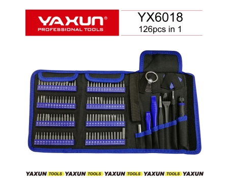 YAXUN YX6018 126 en 1 Juego de destornilladores de precisión Multiuso Bolsa de herramientas Juego de puntas de destornillador para teléfono portátil Herramienta de reparación electrónica