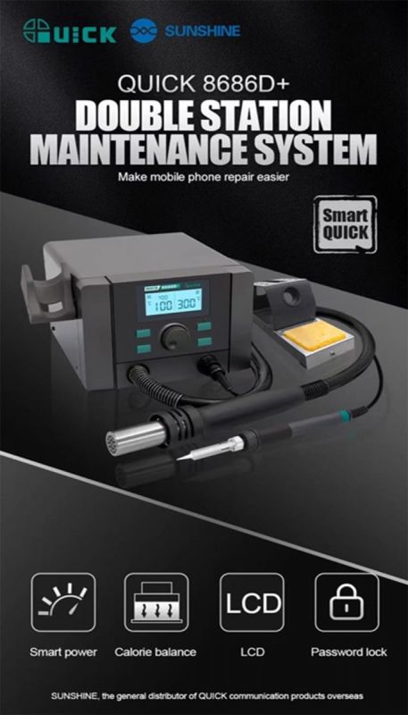 Pistola de aire caliente QUICK 8686D +, estación de soldadura eléctrica, funciona como Quick TS1200A, Quick 2008, misma estación de soldadura, estación de retrabajo