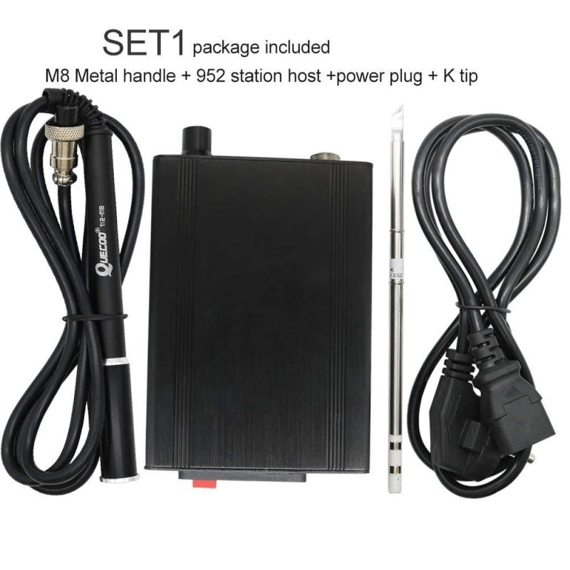 Estación de soldadura con mango de metal negro M8 y varios tipos de puntas de pistola para soldar