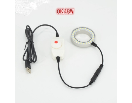 OK48W microscopio anillo de luz LED luz de relleno redondo mini tornillo de luz interfaz de diente microscopio estéreo monocular lente de iluminación luz ascendente y descendente OK42B teléfono móvil reparación prueba de producto
