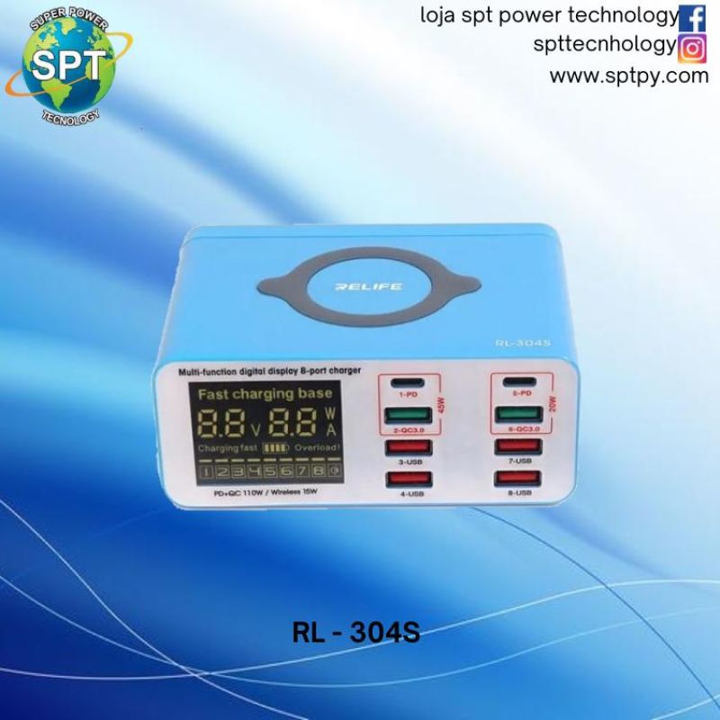 RELIFE-cargador inalámbrico RL-304S con pantalla Digital multifunción, dispositivo de carga rápida de 304M, USB QC 3,0 RL-304S con PD 45W para teléfono, ipad